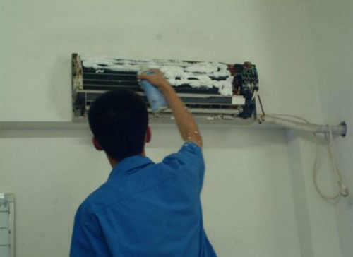 | 包头空调维修师傅给包头用户上门维修清洗空调。 |
